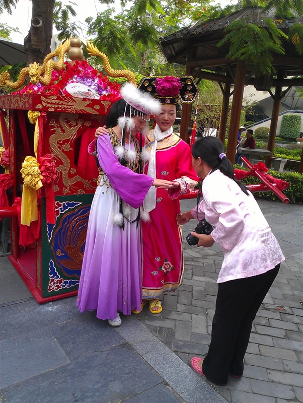 世界之窗通過(guò)微縮景觀(guān)讓我們大開(kāi)眼界,不僅有世界各地的標(biāo)志性建筑而且融合了多姿多彩的西方文化特色和風(fēng)情。我們?cè)谶@門(mén)口拍了張照,便奔到了錦繡中華。園內(nèi)充分展示了中華五千年的文化,其博大精深讓我們嘆為觀(guān)止。大街上有粉墨登場(chǎng)的踩著高蹺高調(diào)游行的小丑,街邊有轉(zhuǎn)動(dòng)的水車(chē),有擺著冰糖葫蘆,還有各種有意思的面具和頗具時(shí)代感的工藝品。出于對(duì)藝術(shù)家的尊重,我買(mǎi)了兩個(gè)用銅絲線(xiàn)做成的小腳踏車(chē)。其中各種各樣的表演,精彩紛呈。最具代表性的有兩個(gè),露天上演的《金戈戰(zhàn)馬》和室內(nèi)演出的《中國(guó)印象》。在跑馬場(chǎng)上,以古代城樓為實(shí)景,一群英姿颯爽的跑馬溜溜的漢子英勇無(wú)敵,策馬奔騰,飛馳原野。除了情景演義還有各種馬上特技表演。如馬上飛馳交鋒,雙人夾擊交戰(zhàn),側(cè)身飛馬撿哈達(dá),飛馬穿越火線(xiàn),等驚險(xiǎn)而刺激。整場(chǎng)氣勢(shì)震撼人心,仿佛走到了那戰(zhàn)火紛飛的年月。《中國(guó)印象》則以中國(guó)服飾文化為主題,是一場(chǎng)唯美的視覺(jué)盛宴。舞臺(tái)上的美女有著高挑苗條的身段,散發(fā)著東方女性特有的氣質(zhì),他們無(wú)不阿羅多姿,風(fēng)情萬(wàn)種,將中國(guó)古代各段時(shí)期不同地域還有頗具韻味的少數(shù)民族服飾詮釋的淋漓盡致。或可愛(ài)俏皮,或優(yōu)雅高貴,或清新亮麗,或妖冶如火。有著西域的神秘色彩,又有著江南的溫柔小情調(diào),更有著皇宮的雍容華貴。性感有如勾人魂魄,動(dòng)感則讓人聞歌起舞。每一個(gè)造型都刻著豐富的文化內(nèi)涵,它代表的是人們對(duì)時(shí)代的認(rèn)同感,對(duì)人性的理解,和對(duì)審美的更高追求。